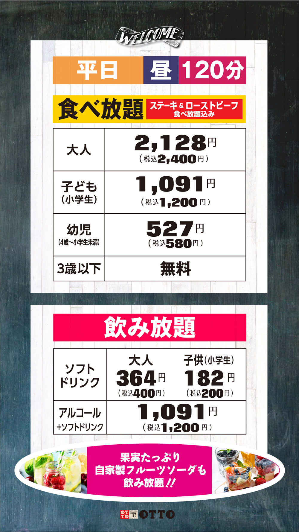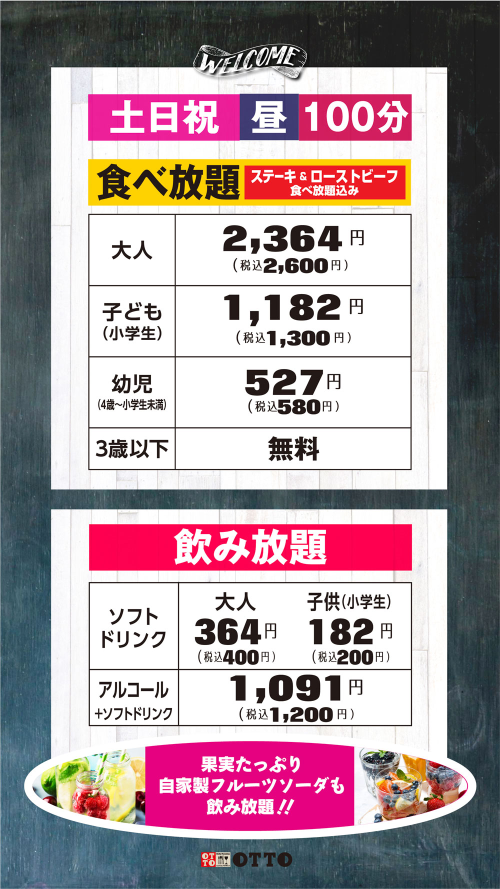 大人から子供まで楽しめるビュッフェ料理&ドリンクがOTTOの魅力。